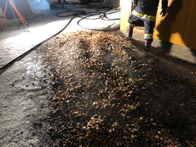 Durch einen Nachbar wurde in den frühen Morgenstunden eine Rauchentwicklung im Bereich einer Heizanlage festgestellt und die Feuerwehr alarmiert. Vor Ort zeigte sich ein Entstehungsbrand im Bereich des Hackschnitzellagers, welcher durch erste Löschmaßnahmen bereits eingedämmt wurde. Durch die Feuerwehren wurde in Folge das teils glosende Hackgut unter Atemschutz beräumt und vor dem Gebäude abgelöscht. Nach abschließenden Kontrolltätigkeiten mit der Wärmebildkamera konnte nach gut zwei Stunden wieder eingerückt werden.